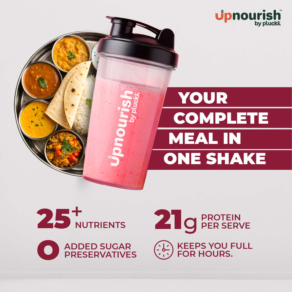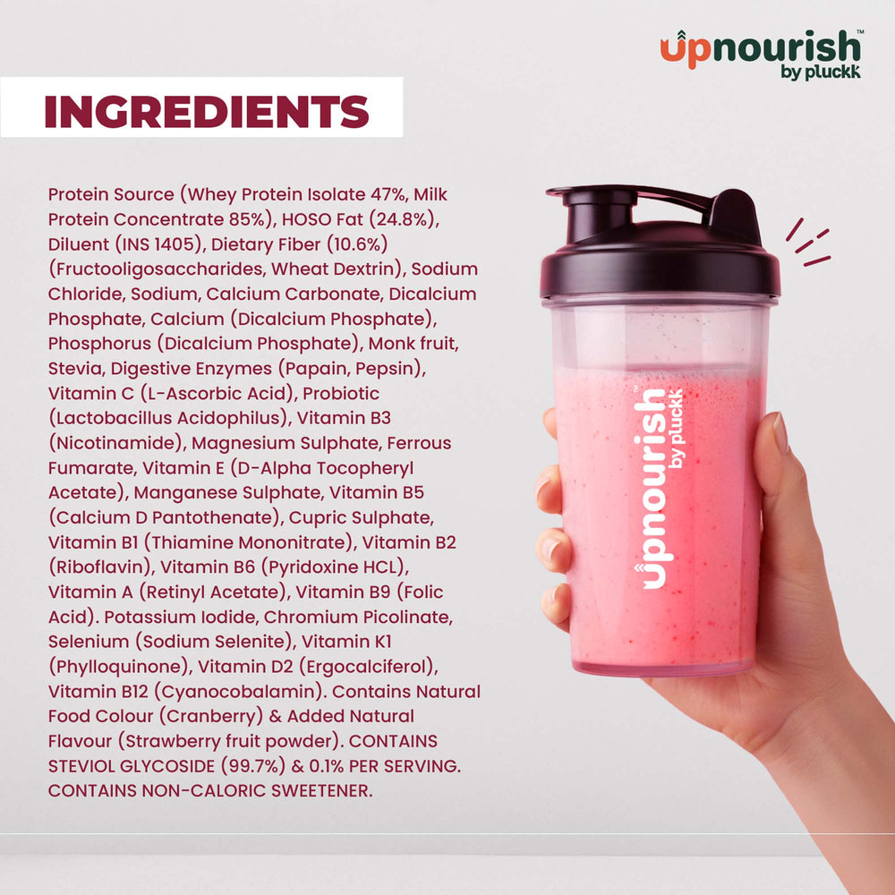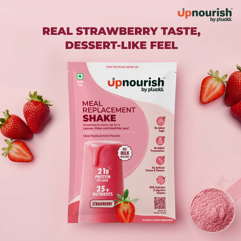 Sip on the taste of real strawberries in this refreshing Meal Replacement Shake, formulated by expert nutritionists for balanced nutrition and effective weight management. Naturally sweetened with Stevia and Monk Fruit, with no added sugar, preservatives, or artificial ingredients. Enriched with probiotics and digestive enzymes to support gut health and keep you feeling light and energized.